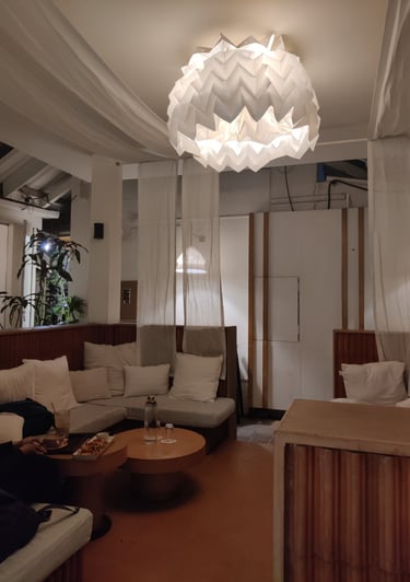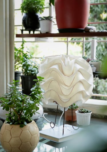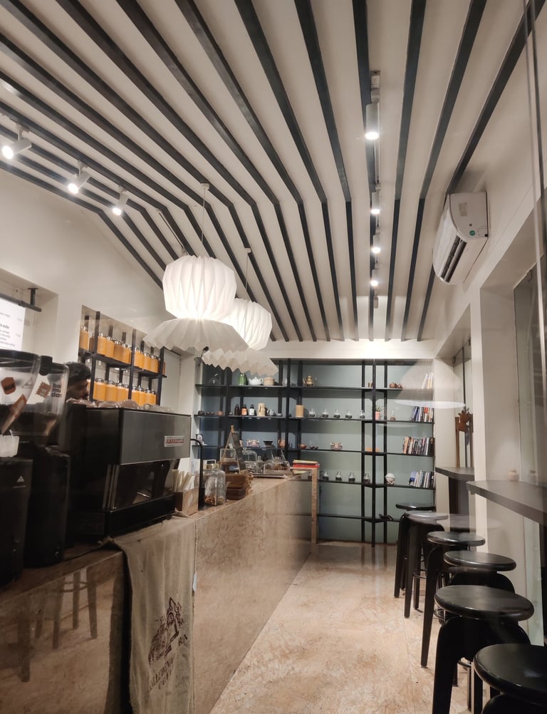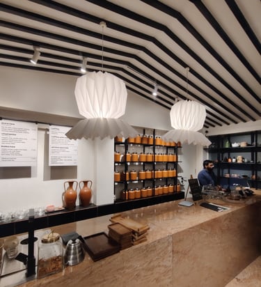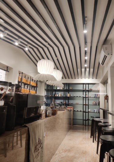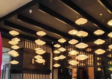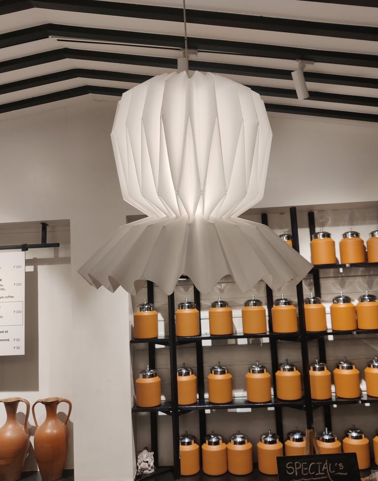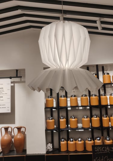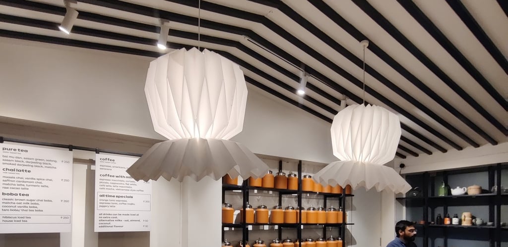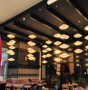 The handcrafted minimalist lamps bring a crisp, serene aesthetic to the Japanese café: Baimudan, in Koregaon Park Pune. Blending traditional craftsmanship with modern design. Each piece embodies the essence of simplicity and elegance, casting a gentle, warm glow that enhances the tranquil atmosphere, perfect for savoring the quiet beauty of your surroundings."